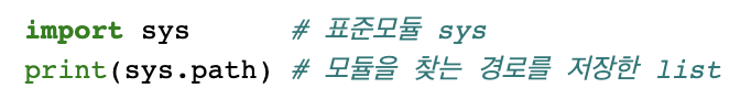 🌓 import 모듈 구문을 사용하면 파이썬 실행 환경은 모듈을 다음 경로에서 찾는다.