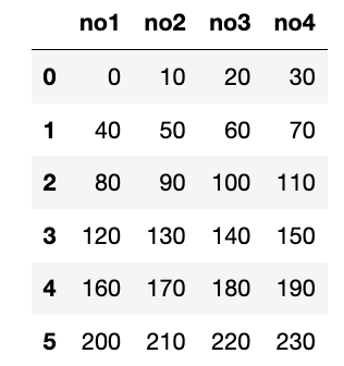 df = pd.DataFrame(a, columns=['no1', 'no2', 'no3', 'no4'])