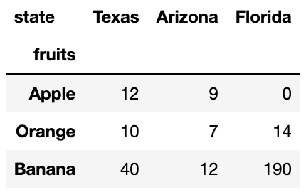 s3 = s2.rename_axis(columns='state', index = "fruits")