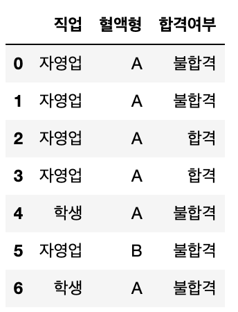 "합격여부": np.random.choice(['합격', '불합격'], 7)}