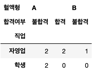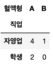 columns=df["혈액형"]) # column에 위치시킬 컬럼(범주형)