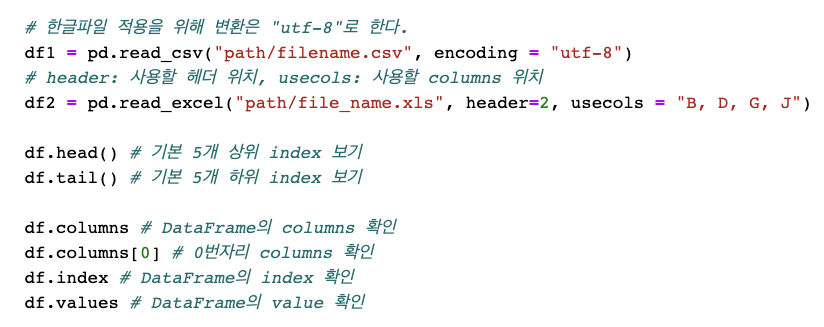 - pd.DataFrame(배열, index, columns)
