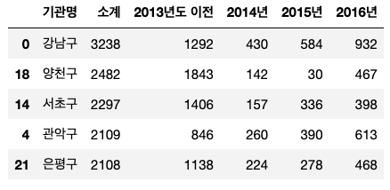 df.sort_values(by="소계", ascending = False).head()