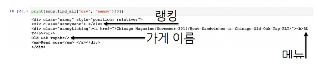 📎 HTML 문서에서 클래스명이 "sammy"인 모든 div 태그들을 찾아 리스트로 반환합니다.